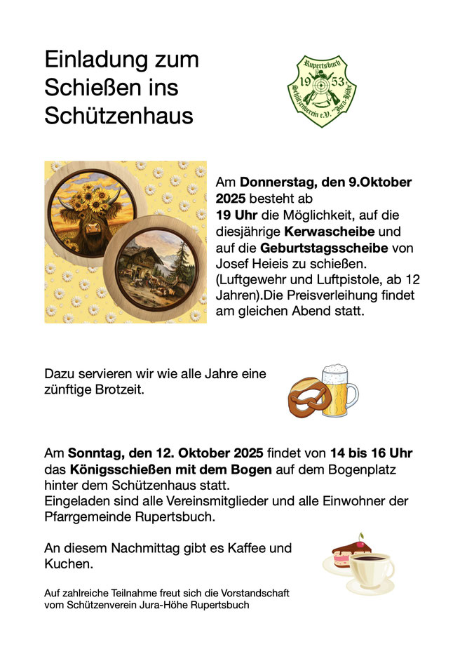 Der Schützenverein Jura-Höhe Rupertsbuch wurde im Jahre 1953 gegründet. Der Verein erstrebt den Zusammenschluss der interessierten Schützen und verfolgt insbesondere die Pflege und Förderung des sportlichen Schießens nach den nationalen und internationalen Regeln, sowie Zusammenhalt und Kameradschaft aller Vereinsmitglieder.